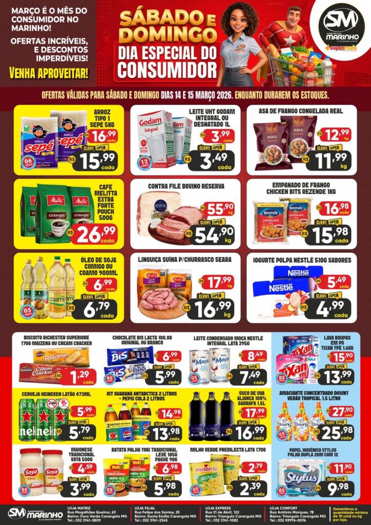 CONFIRA AS OFERTAS SENSACIONAIS DOS SUPERMERCADOS MARINHO PARA ESTE SÁBADO E DOMINGO – DIA ESPECIAL DO CONSUMIDOR