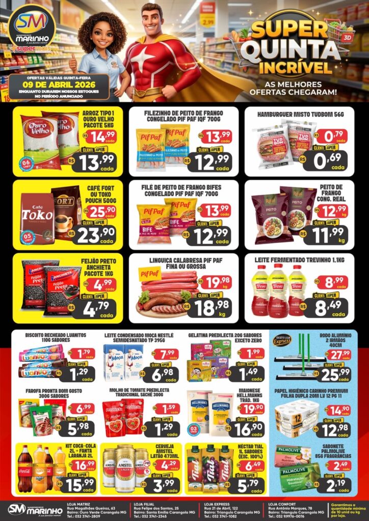 CONFIRA AS OFERTAS SENSACIONAIS DOS SUPERMERCADOS MARINHO PARA ESTA QUINTA-FEIRA IMPERDÍVEL
