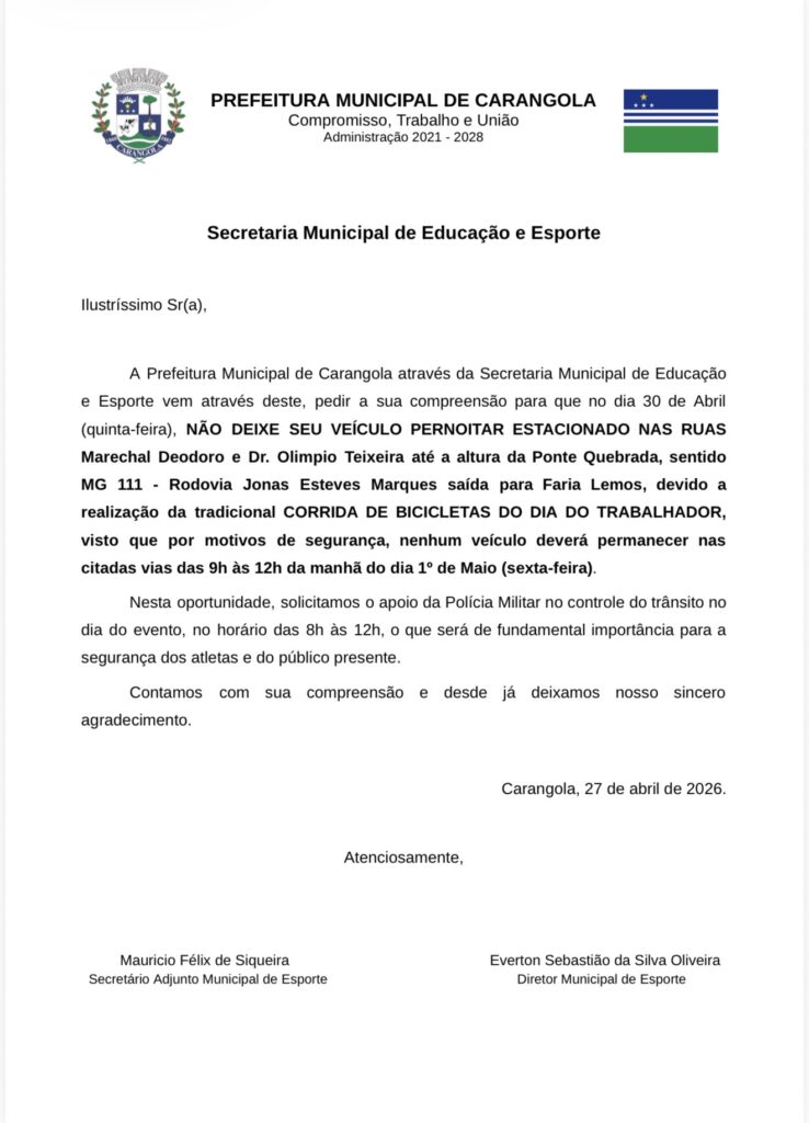 Carangola será palco de mais uma grande celebração do esporte no próximo dia 1° de maio de 2026, com a realização da 58ª Corrida Ciclística do Trabalhador, evento tradicional que reúne atletas, admiradores do ciclismo e famílias de toda a região. A competição terá novo percurso entre os municípios de Carangola e Tombos, em trajeto […]