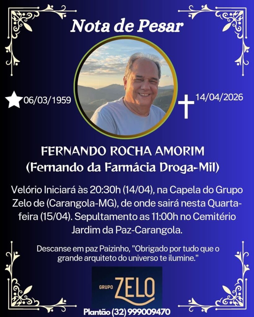 Fernando foi uma pessoa muito querida em Carangola, e sua partida repentina assustou a todos. Fernando foi daquelas pessoas inesquecíveis, que deveriam ser eternas! Conseguia fazer a alegria reinar em qualquer espaço, com suas brincadeiras, comentários engraçados, sua maneira extrovertida de ser, arrancando sorrisos de todos que o rodeavam. Homem cristão e de FÉ, íntegro, […]