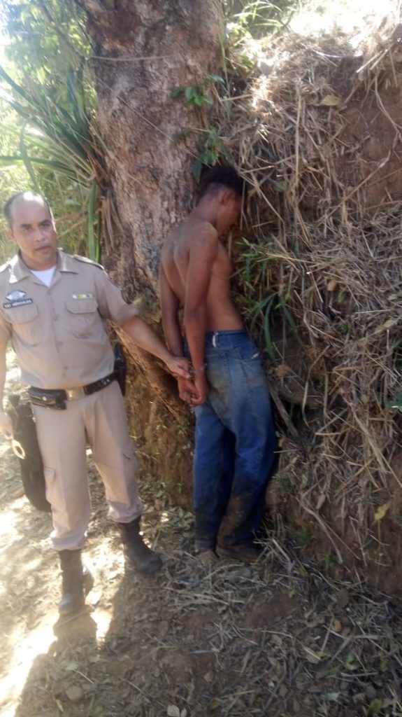 Na manhã deste domingo (16), a PM de Tombos recebeu informações dando conta de que o autor V.A.M. de 36 anos, foragido da justiça e contumaz na prática de diversos delitos como furto a residências e comércios no município de Tombos, estaria perambulando a pé na Serra dos Quintinos, zona rural de Tombos. De imediato, a guarnição PM de Tombos deslocou em patrulhamento com o intuito de localizar o autor.