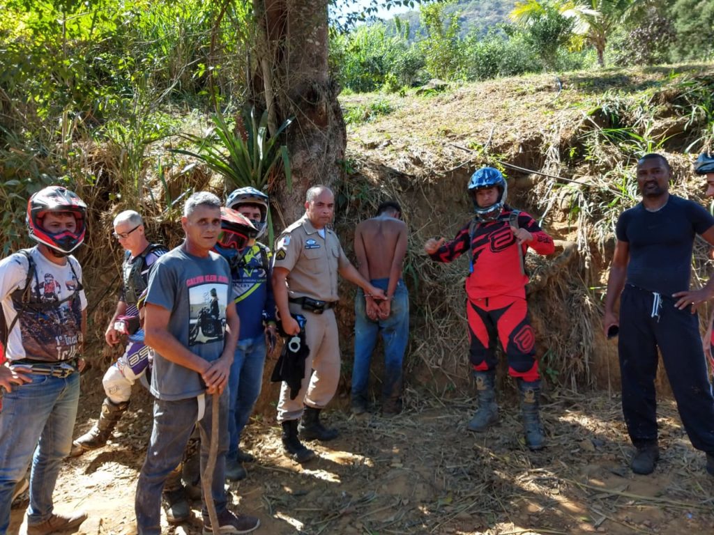 A prisão deste indivíduo somente foi possível graças ao apoio de populares e do Grupo de Trilheiros de Tombos, que deram todo auxílio à guarnição PM que trabalhava no local.