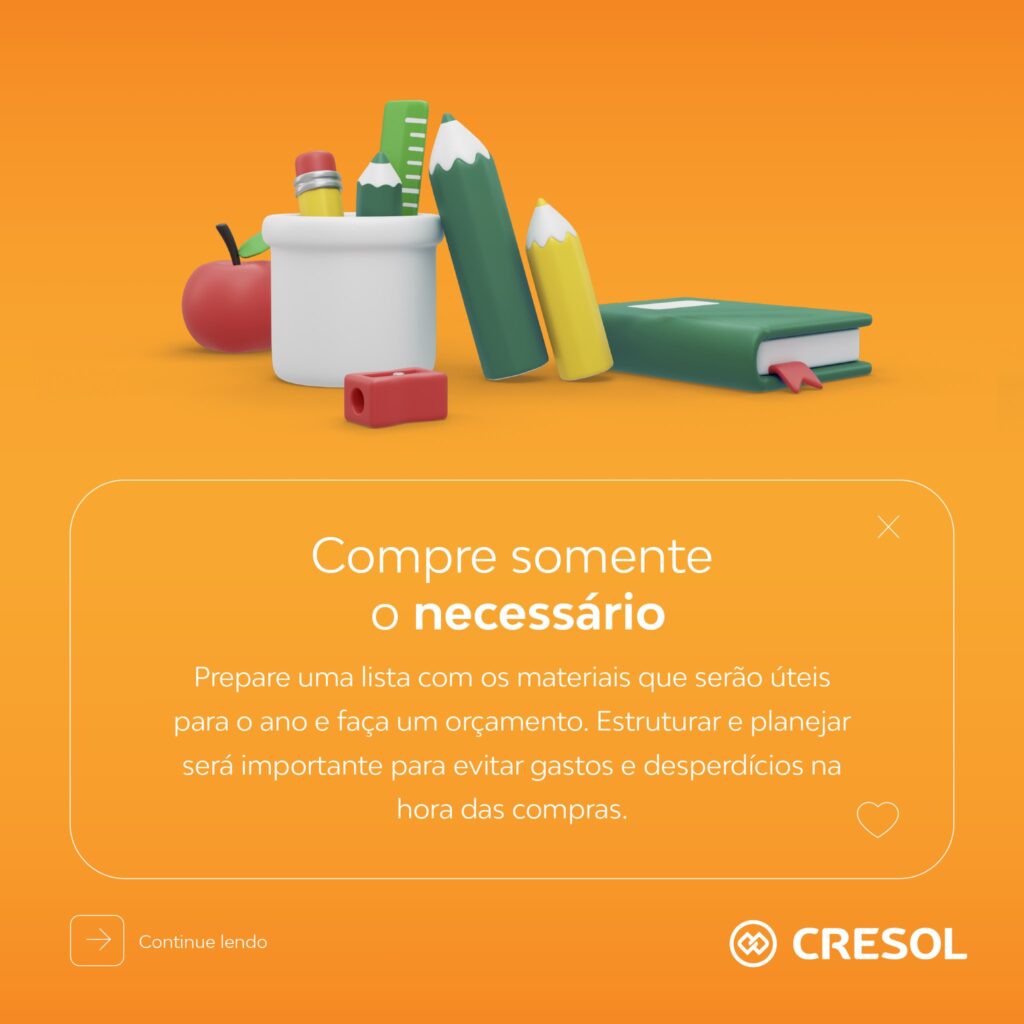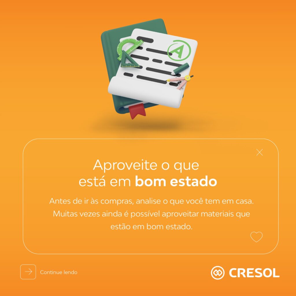 Pensando nisso, a CRESOL preparou algumas dicas sobre como deve ser o retorno às escolas em 2023 e separou algumas sugestões para te ajudar a economizar nos gastos do período. Confira!