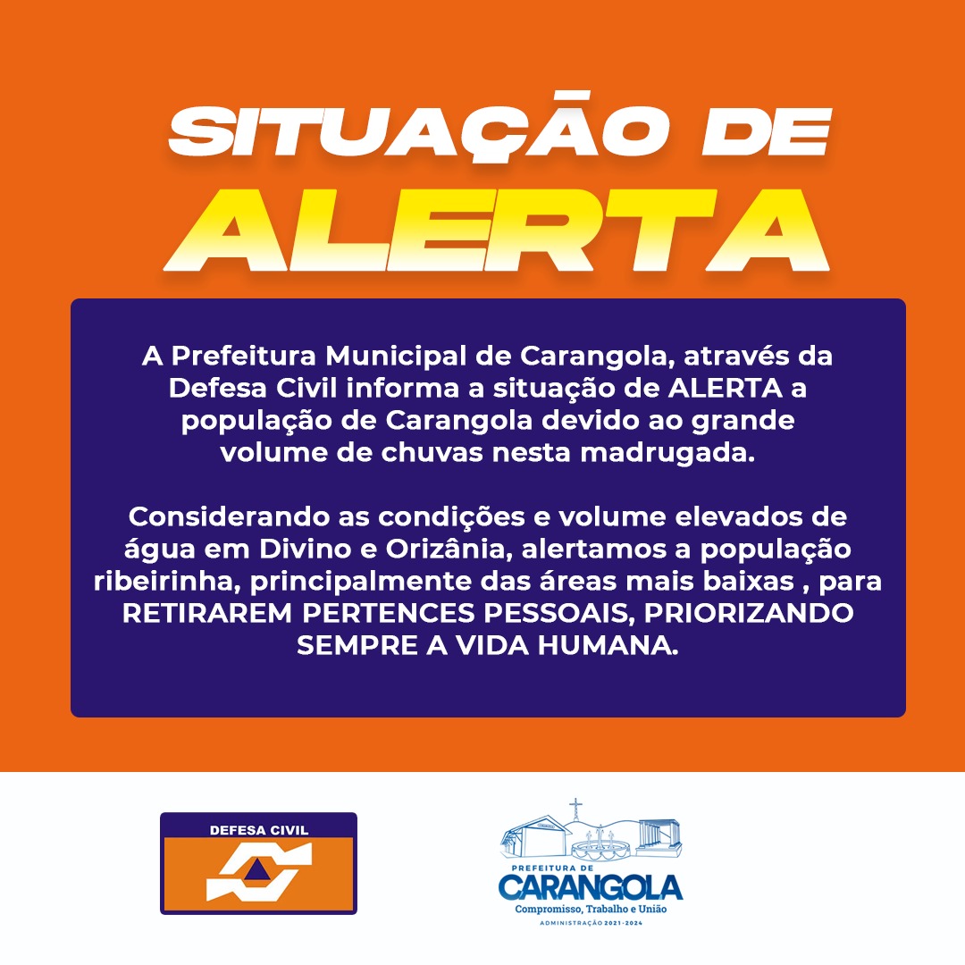 A DEFESA CIVIL INFORMA: SITUAÇÃO DE ALERTA A POPULAÇÃO DE CARANGOLA
