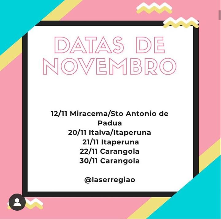 A LASER REGIÃO ESTARÁ NESSA SEXTA(22)EM CARANGOLA, CORRA E MARQUE JÁ SUA SESSÃO.