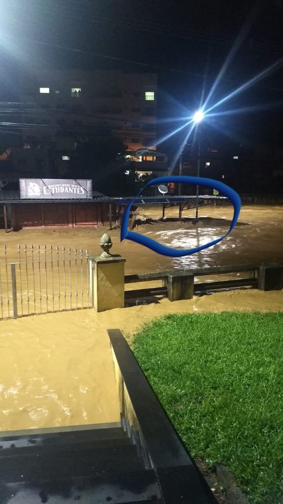 O Rio Carangola começou a sair de sua calha na manhã desta sexta-feira (19) e chegou a um nível sem precedentes. Quase 100% do comércio foi afetado, além da grande maioria das residências e instituições da cidade. Uma casa caiu no distrito de LACERDINA e outra na AV. Machado de Assis. Não há vítimas fatais da enchente na cidade até o momento.