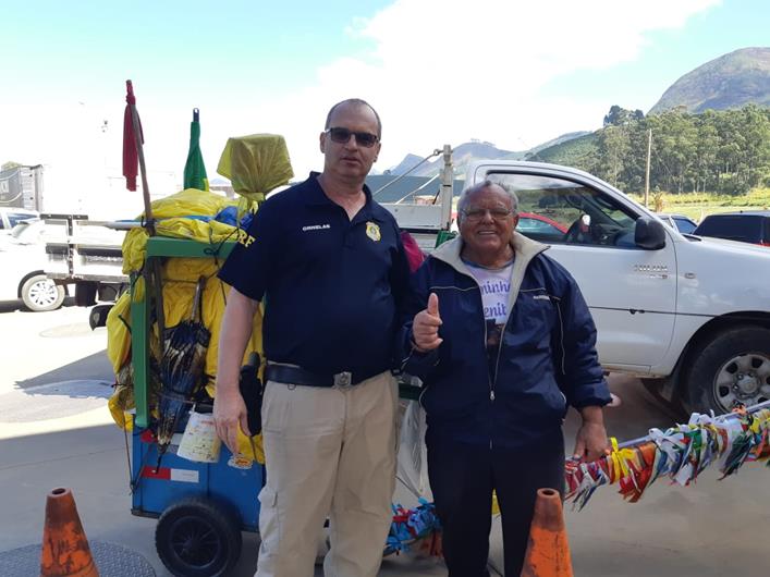 “Segundo ele, o gesto é em cumprimento de uma promessa a Nossa Senhora Aparecida, e a graça alcançada foi a cura de uma trombose. Produzi um mini documentário com três minutos de duração contando a proeza deste homem cheio de fé que deverá em breve passar por Muriaé. Estamos atentos para registrar a passagem desse peregrino por nossa região” diz o Ornelas (Veja o vídeo).