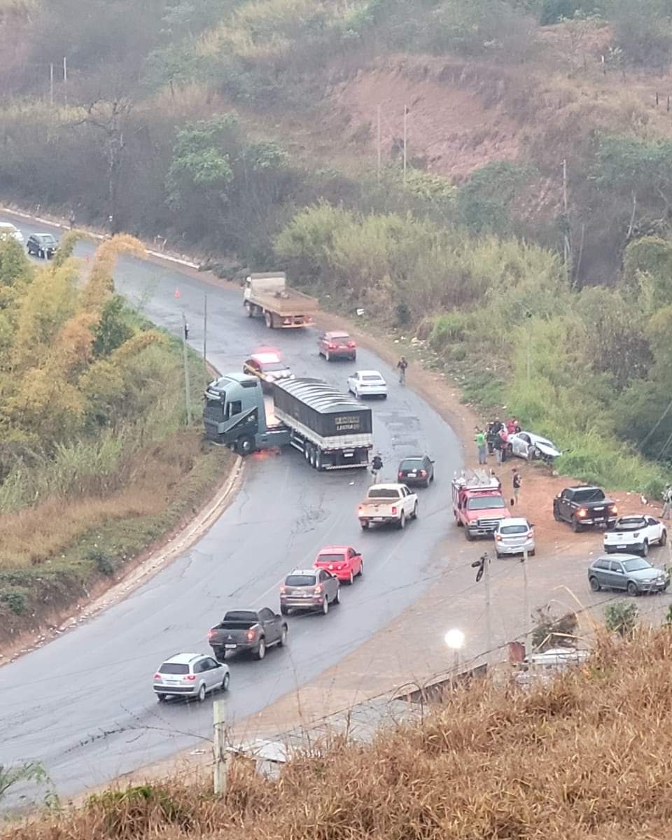 ACIDENTE ENTRE CARRETA E AUTOMÓVEL DEIXA DUAS PESSOAS GRAVEMENTE FERIDAS NA BR-262, EM MANHUAÇU