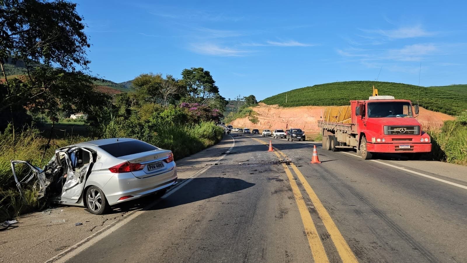 O Corpo de Bombeiros e a Polícia Rodoviária Federal estiveram no local para atendimento da ocorrência e controle do tráfego.