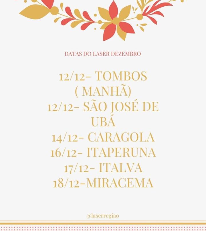 A Laser Região estará em Carangola nesta sexta-feira, dia 14 de Dezembro, atendendo com o melhor Laser da cidade.