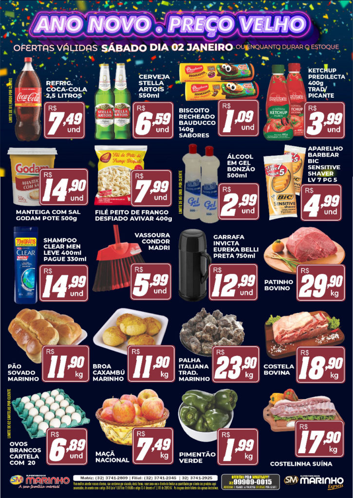 ANO NOVO, PREÇO VELHO: CONFIRA AS OFERTAS IMPERDÍVEIS DOS SUPERMERCADOS MARINHO PARA ESTE SÁBADO (02/01)