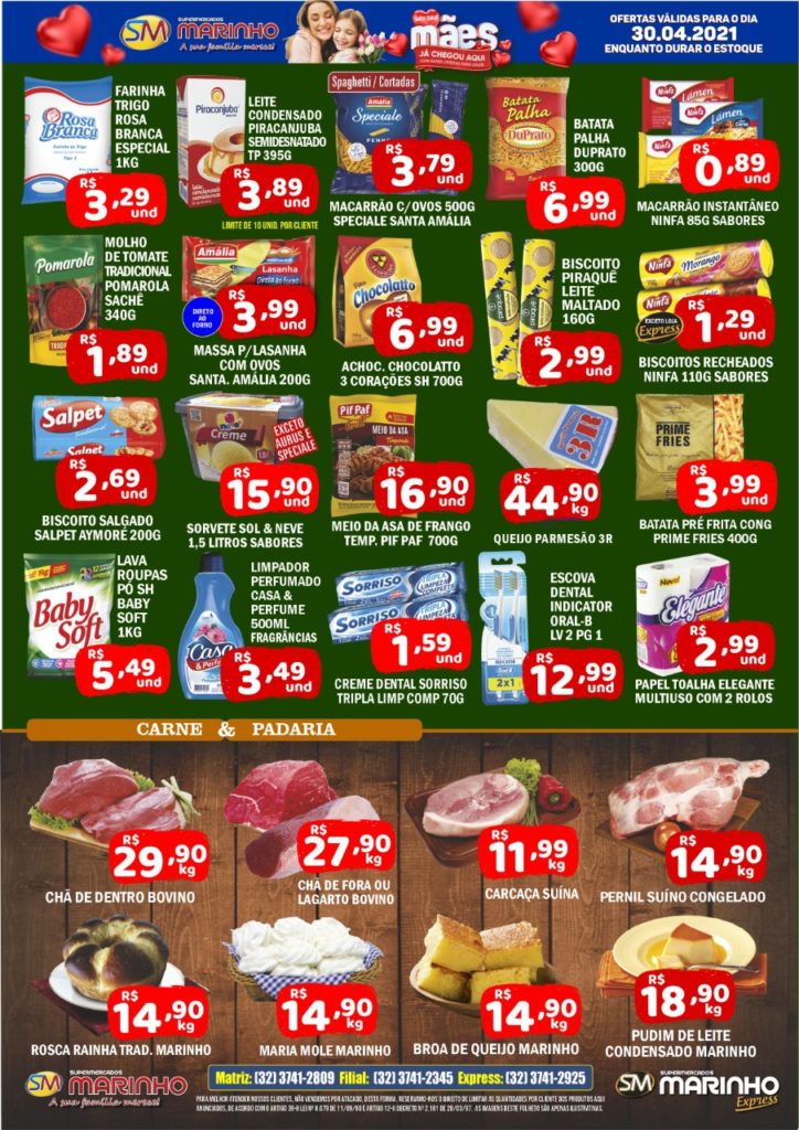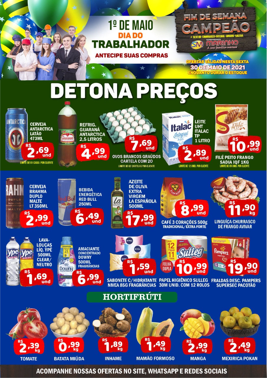 APROVEITE AS OFERTAS DOS SUPERMERCADOS MARINHO PARA ESTA SEXTA-FEIRA (30); OS SUPERMERCADOS MARINHO NÃO FUNCIONARÃO NESTE SÁBADO FERIADO DE 1° DE MAIO… ANTECIPE SUAS COMPRAS! 29 de abril de 2021 COMPRE NOS SUPERMERCADOS MARINHO E CONCORRA A PRÊMIOS