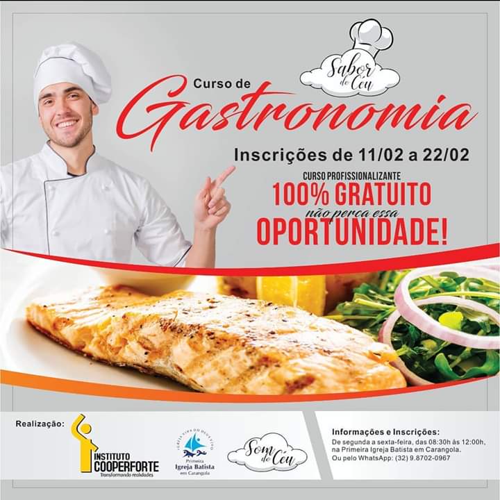 A T E N Ç Ã O!!! É com grande alegria que anunciamos nosso primeiro Curso Profissional de Gastronomia em parceria com o @institutocooperforte e a @pibcarangola! As inscrições começam dia 11 e vão até 22/02, onde podem ser feitas presencialmente de segunda a sexta, de 08:30h às 12:00h, ou através do WhatsApp (32) 9.8702-0967. […]