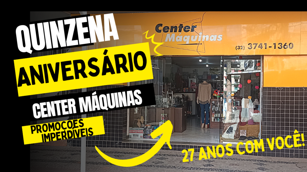 A LOJA CENTER MÁQUINAS FAZ ANIVERSÁRIO NESTE MÊS DE JULHO E QUEM GANHA O PRESENTE É VOCÊ!!! Há 27 anos a Center Máquinas traz a seus clientes qualidade, variedade e preço justo em máquinas de costura e bordados, linhas, aviamentos, tecidos diversos, artigos de cama, mesa e banho e muito mais! A Center Máquinas ainda […]