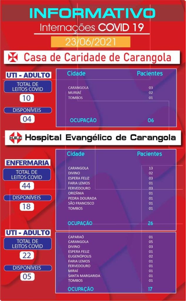 Fonte: Casa de Caridade de Carangola e Hospital Evangélico de Carangola.(Alessandro Coutinho)