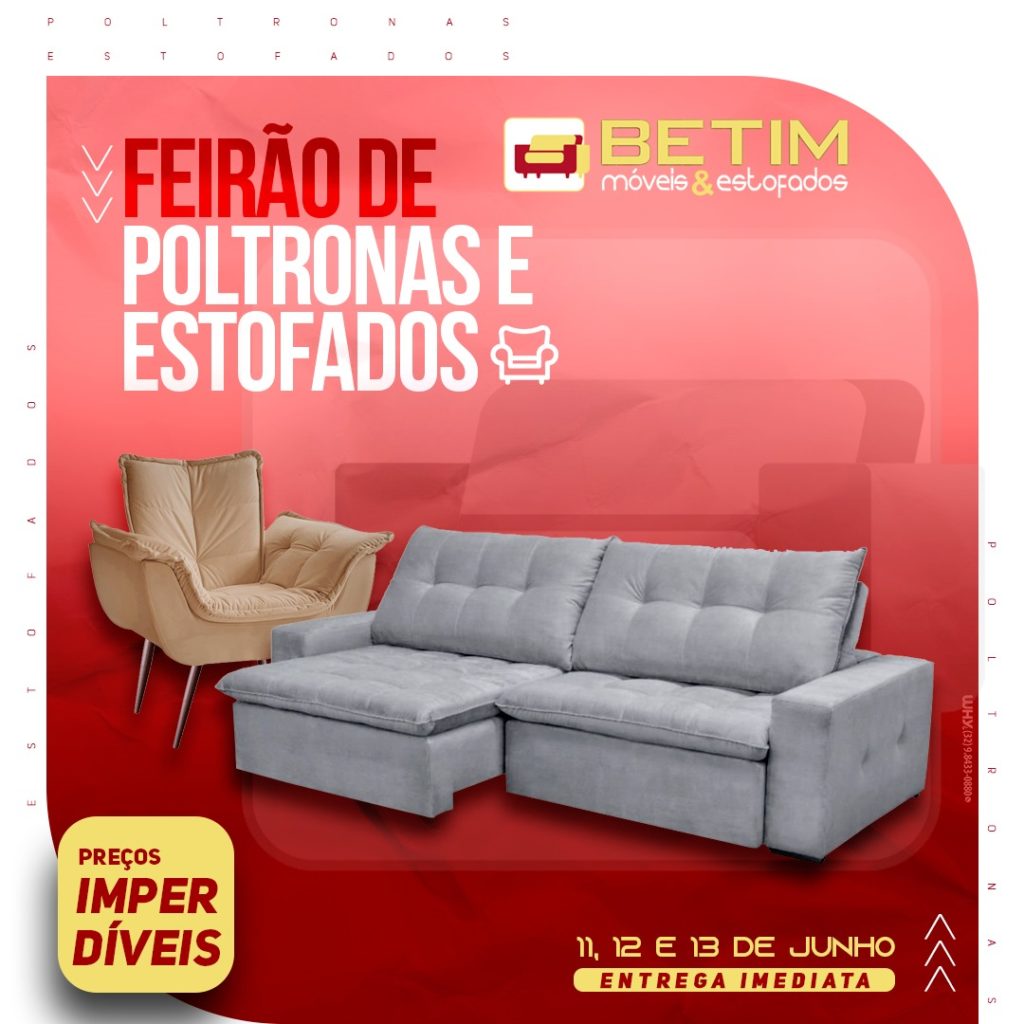 AS LOJAS BETIM MÓVEIS & ESTOFADOS REALIZAM A PARTIR DESTA SEXTA-FEIRA (11/06) ATÉ DOMINGO (13/06) O FEIRÃO DE ESTOFADOS COM QUEIMA DE ESTOQUE E DE MOSTRUÁRIO. SÃO ESTOFADOS DE PRIMEIRA LINHA COM MEGA DESCONTOS REAIS, PROPORCIONANDO QUE VOCÊ COMPRE ECONOMIZANDO!!! VENDAS À VISTA OU NO CARTÃO EM ATÉ 12 VEZES!!! O FEIRÃO ACONTECE NO ESPAÇO […]