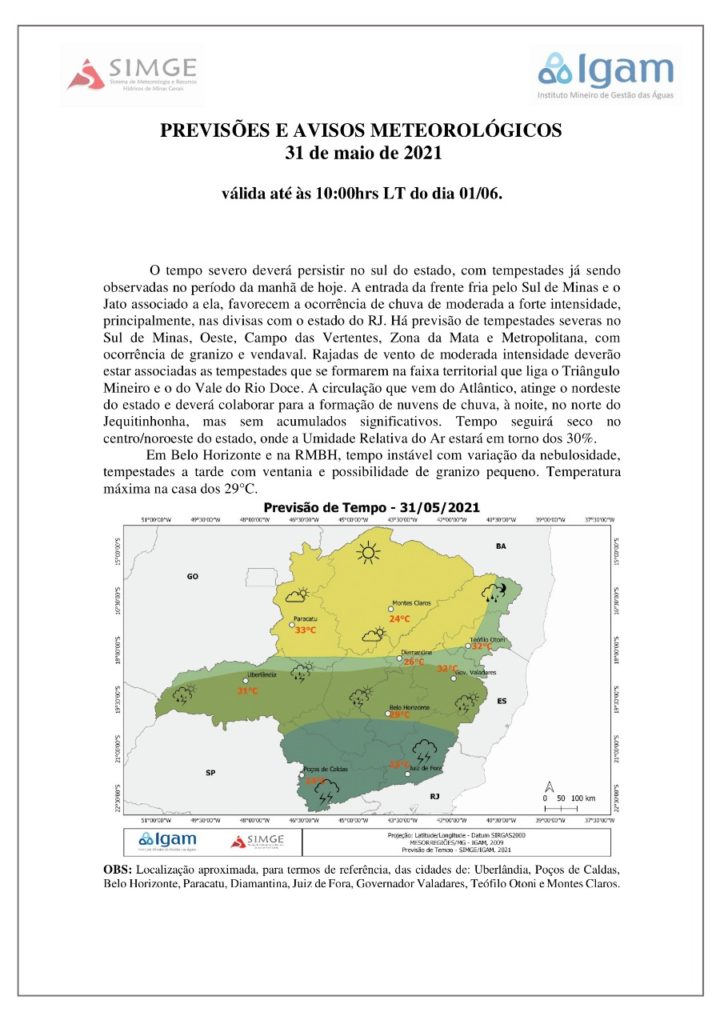 A Prefeitura de Carangola através da Defesa Civil informa a população a chegada de uma frente fria que favorece a ocorrência de chuva moderada a forte intensidade com a previsão de tempestades severas na Zona da Mata, com ocorrência de granizo e vendavel. Solicitada a toda população que esteja atenta aos informativos e disposnibiliza os […]