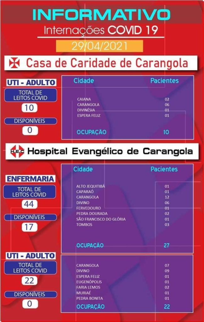 Informações: Casa de Caridade de Carangola e Hospital Evangélico de Carangola (colaboração: Alessandro Coutinho)