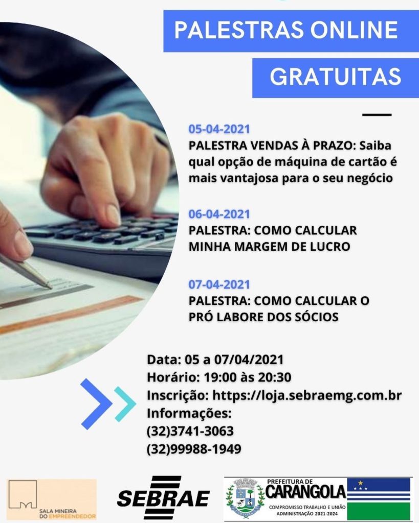 SEBRAE OFERECE PALESTRAS ON LINE GRATUITAS PARA EMPREENDEDORES COM TEMÁTICAS LIGADAS À VENDAS À PRAZO, CÁLCULO DE MARGEM DE LUCRO E PRÓ LABORE DOS SÓCIOS