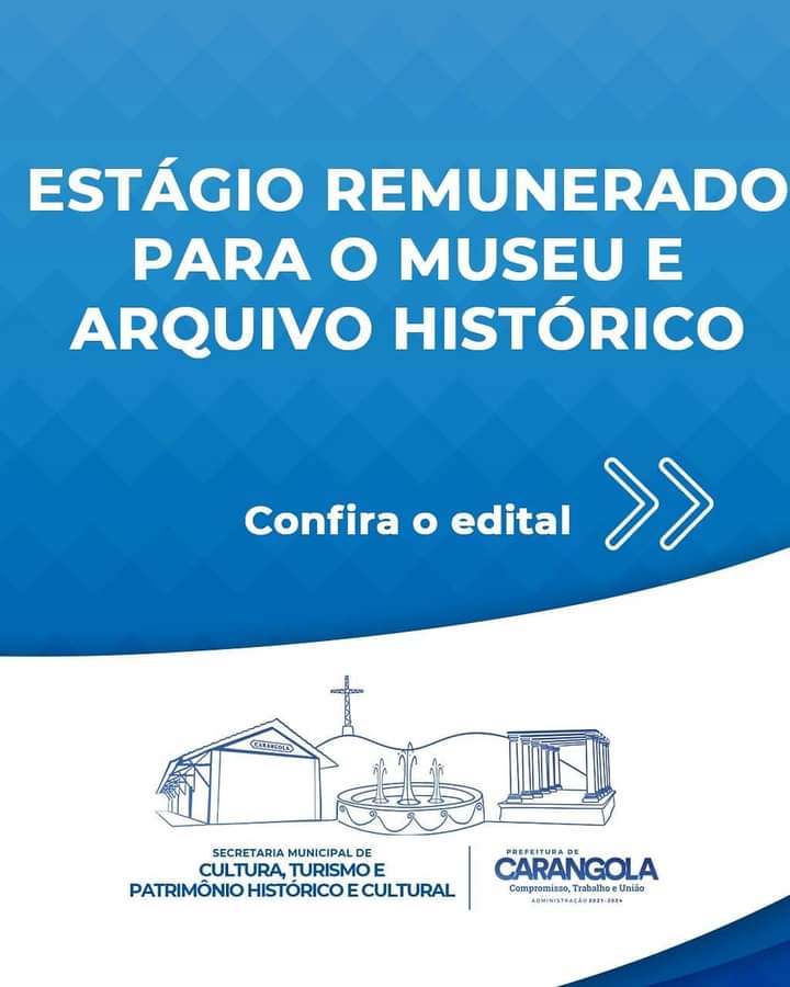 PREFEITURA DE CARANGOLA OFERECE VAGAS PARA ESTÁGIO REMUNERADO PARA O MUSEU E ARQUIVO HISTÓRICO; CLIQUE E CONFIRA O EDITAL