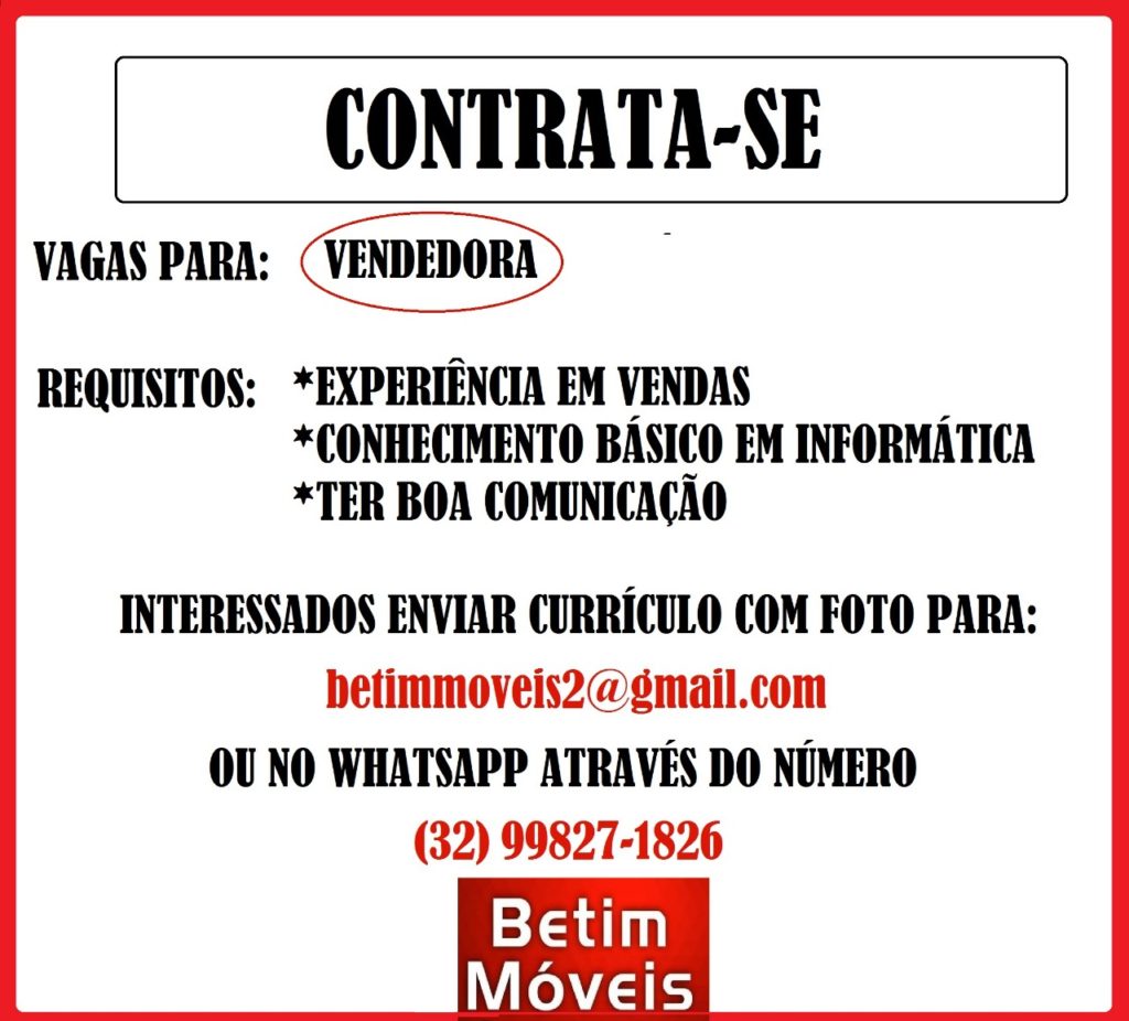 A LOJA BETIM MÓVEIS ESTÁ RECEBENDO CURRÍCULOS PARA CONTRATAR FUNCIONÁRIOS PARA SUA NOVA LOJA QUE SERÁ INAUGURADA EM BREVE NO CENTRO DE CARANGOLA!