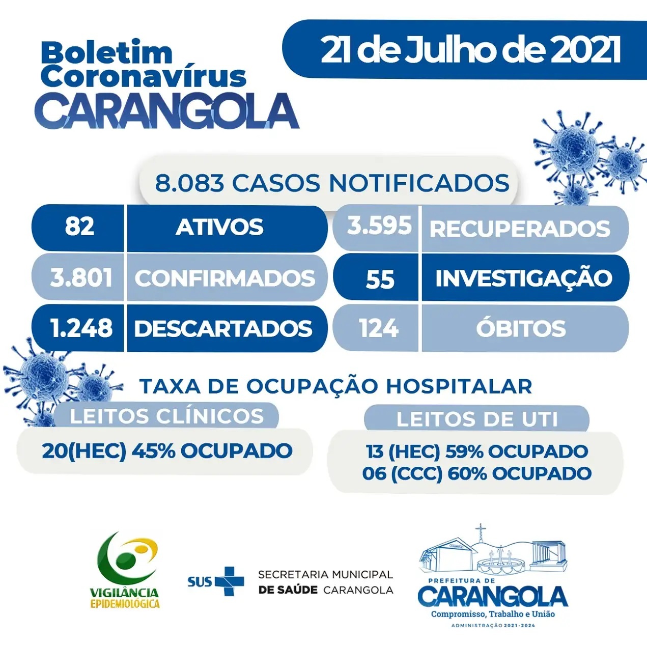 BOLETIM MOSTRA QUEDA NA TAXA DE OCUPAÇÃO HOSPITALAR DE PACIENTES COVID-19 EM CARANGOLA 22 de julho de 2021 FONTE: PREFEITURA DE CARANGOLA