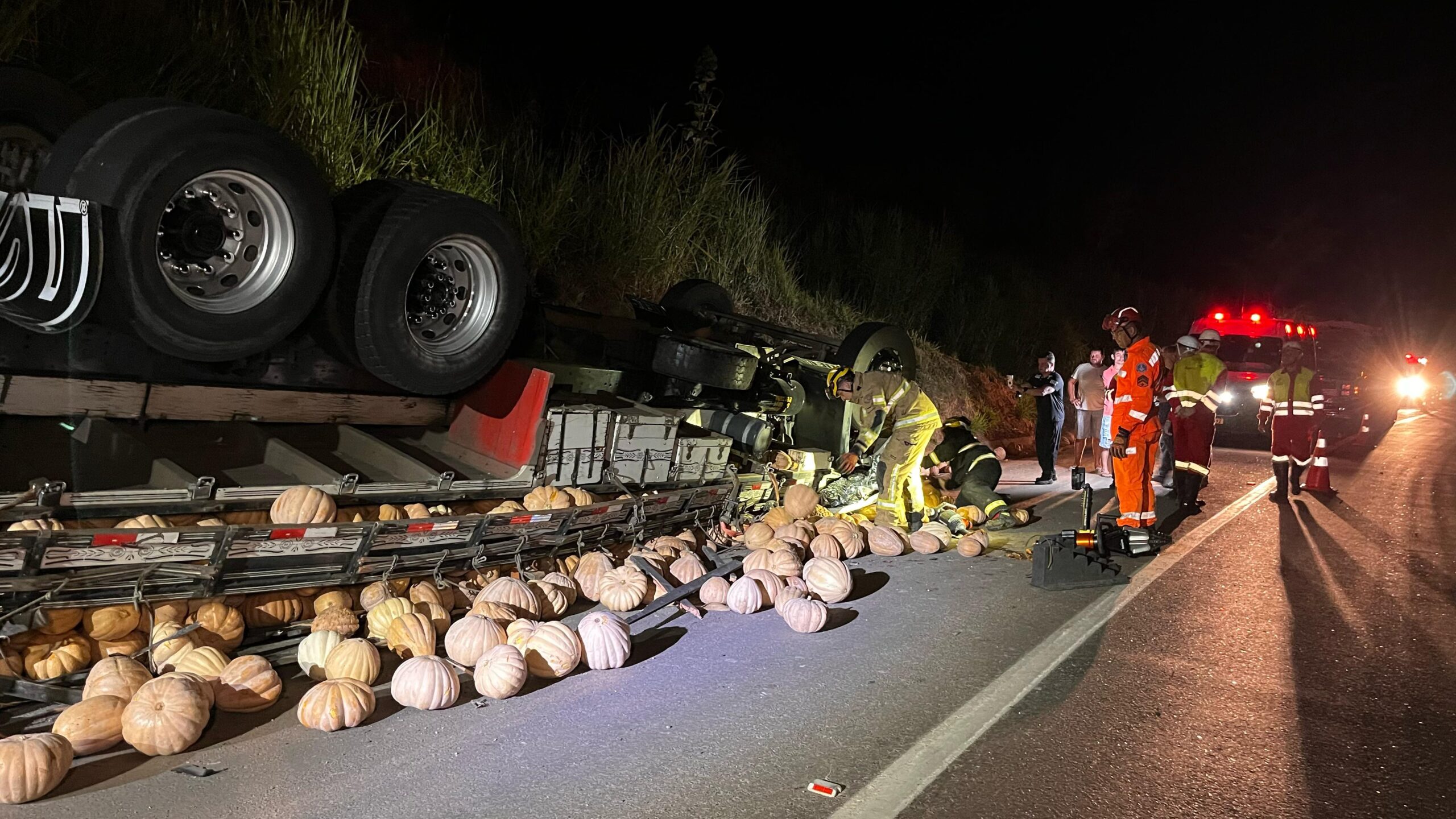 CAMINHÃO DE ABÓBORA TOMBA E MATA MOTORISTA NA BR-116, PRÓXIMO A MIRADOURO
