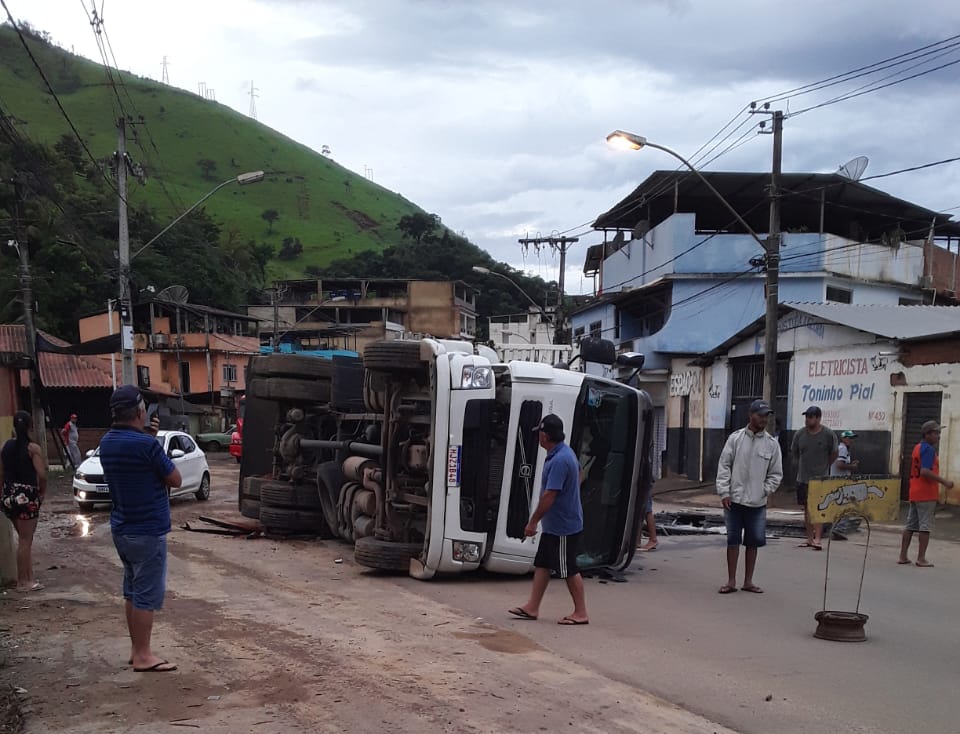 CAMINHÃO DE PEDRAS TOMBA EM CARANGOLA APÓS ABERTURA DE UM BURACO NO ASFALTO NA AVENIDA CAPITÃO ANTÔNIO CARLOS DE SOUZA