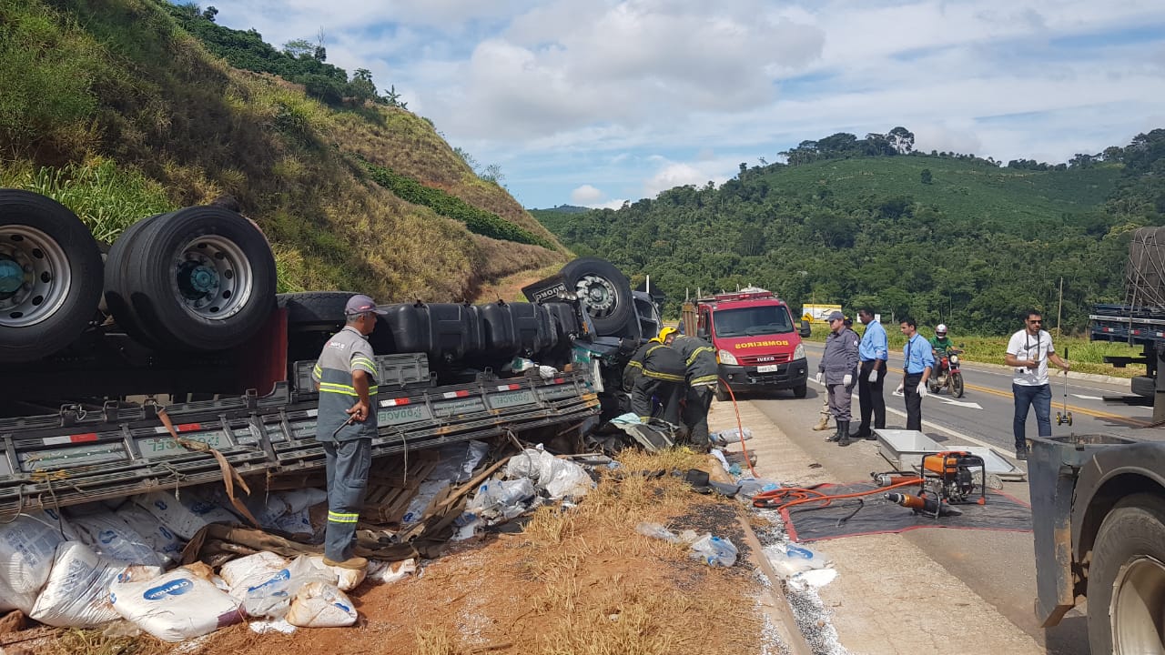 CAMINHÃO TOMBA E MATA DOIS HOMENS NA BR-116, ZONA RURAL DE MANHUAÇU