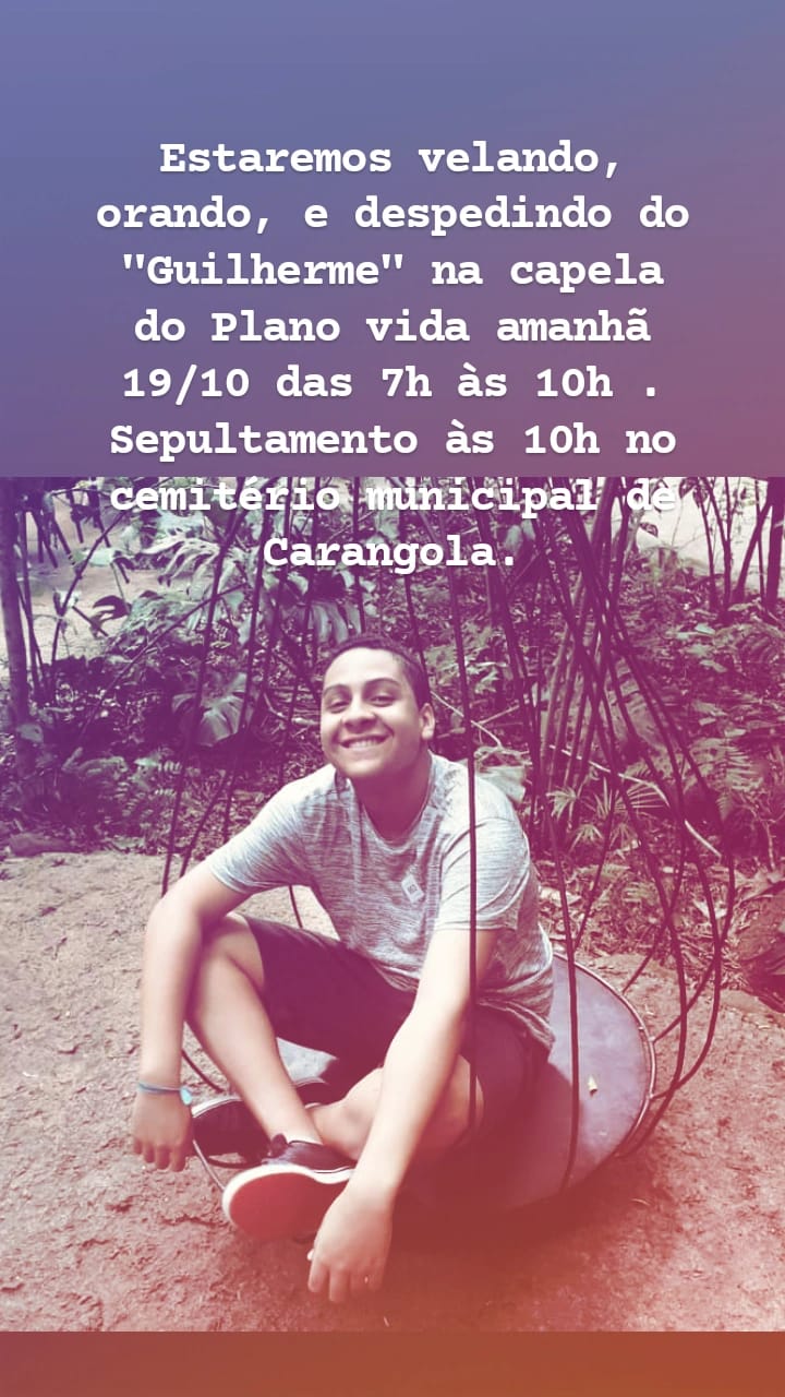 CARANGOLA CHORA A MORTE PRECOCE DO ADOLESCENTE GUILHERME PRADO MEDEIROS; VELÓRIO E ENTERRO ACONTECERÃO NA MANHÃ DESTA TERÇA-FEIRA (19) NA CAPELA DO PLANO VIDA/GRUPO ZELO EM CARANGOLA