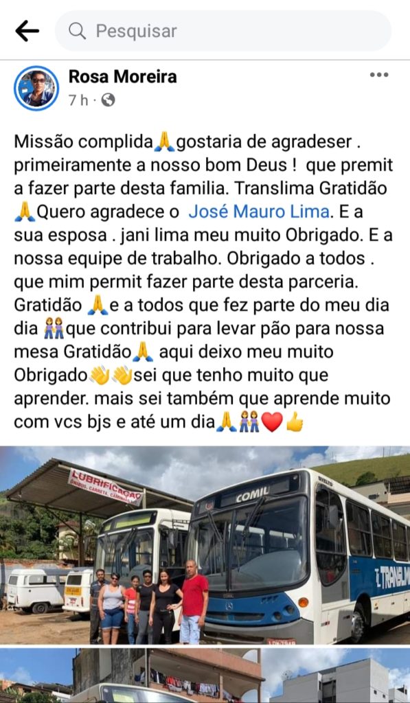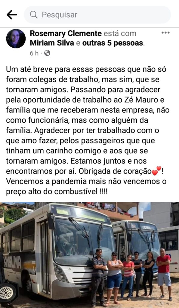 Não se sabe se a empresa TRANSLIMA interessaria a retornar com as atividades mesmo se o valor do subsídio mensal for atualizado, uma vez que nas redes sociais algumas funcionárias da empresa que trabalhavam na linha urbana de Carangola deixaram mensagens já de despedida, agradecendo ao proprietário da empresa pela oportunidade de trabalho e aos passageiros pela amizade, dando a entender que estariam “saindo” da empresa. Em uma das postagens, a funcionária finaliza com a frase ” Vencemos a pandemia mas não vencemos o preço alto do combustível”. Seguem abaixo as postagens públicas de funcionárias em suas redes sociais: