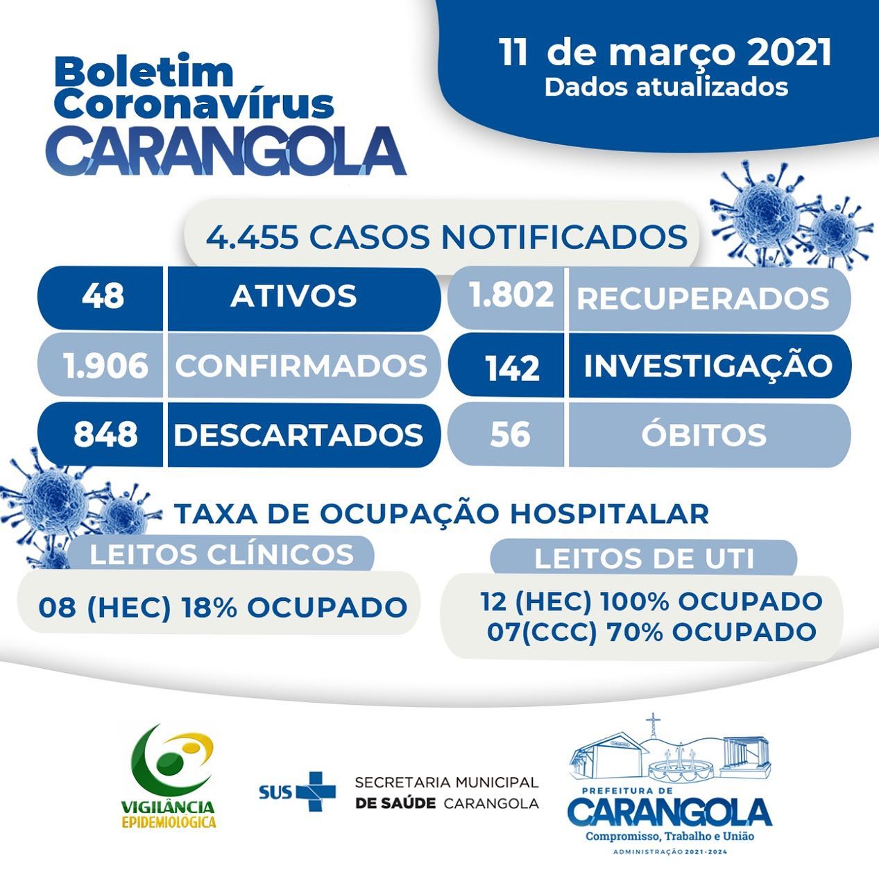 Vale informar que os leitos clínicos e de UTI NÃO PERTENCEM AO MUNICÍPIO DE CARANGOLA, E SIM AO ESTADO DE MINAS GERAIS, motivo pelo qual acolhe pacientes de toda a região.