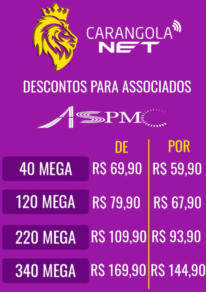 Associados da ASPMC tem DESCONTO ESPECIAL na CARANGOLA NET!!! CONFIRA: