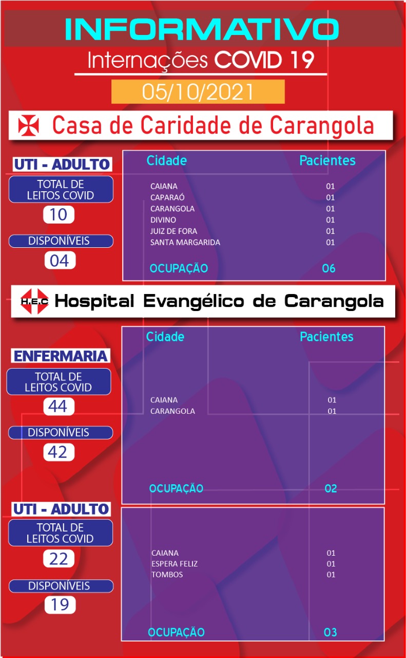 CARANGOLA POSSUI APENAS 2 PACIENTES COVID INTERNADOS, SENDO 1 NA CASA DE CARIDADE E OUTRO NO HOSPITAL EVANGÉLICO