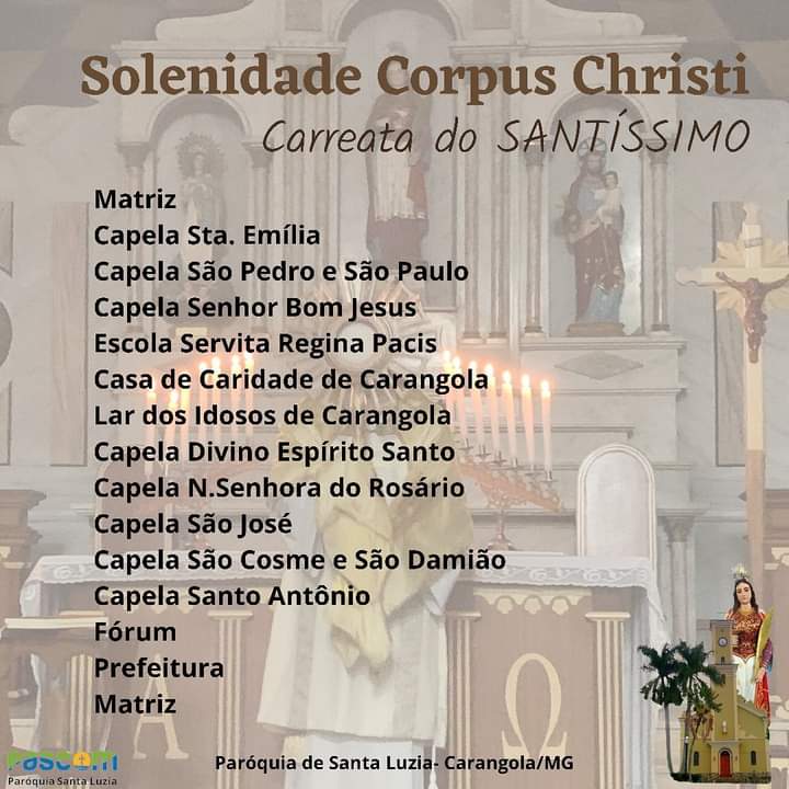 CARREATA COM SANTÍSSIMO VISITARÁ CAPELAS DA PARÓQUIA DE SANTA LUZIA APÓS MISSAS DAS 8H DA MANHÃ; CLIQUE E CONFIRA O TRAJETO