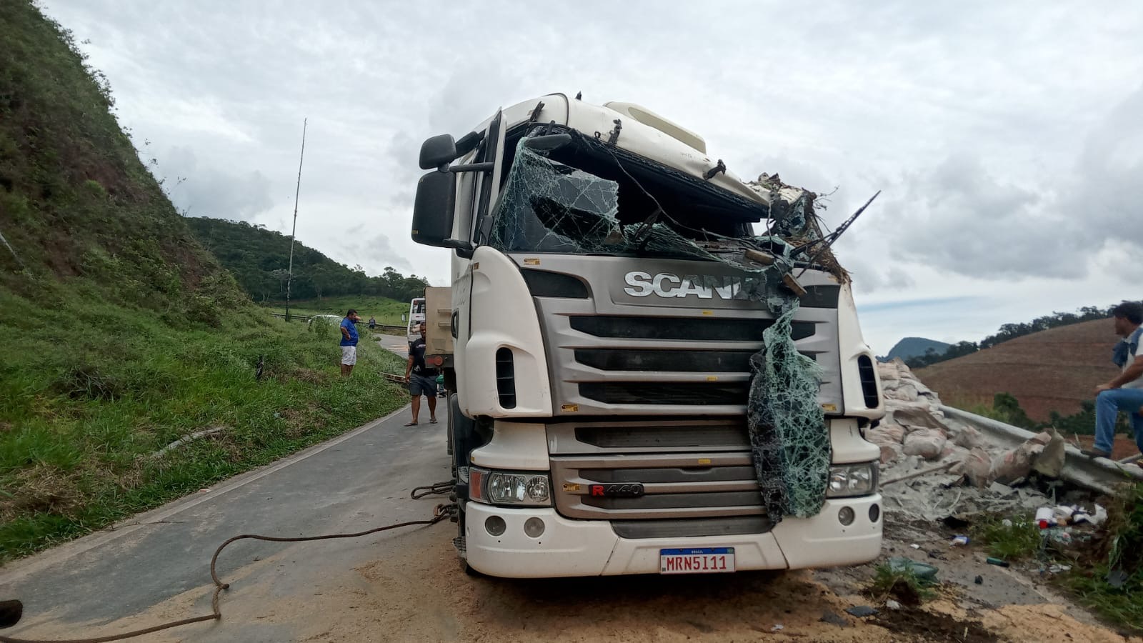 Na manhã desta quarta-feira, por volta das 08:00 horas, ocorreu um tombamento de uma combinação (caminhão trator, reboque e semi reboque) carregada com sacos de cimento. O fato ocorreu na Rodovia MG-111, altura do km 139, em Carangola-MG.
