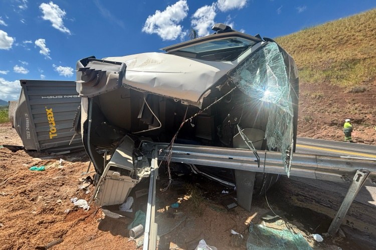 Apesar dos danos na cabine, o motorista não se feriu, mas precisou ser levado para o Hospital São Paulo por uma ambulância da EcoRioMinas, após apresentar queixa de tontura e pressão alta.