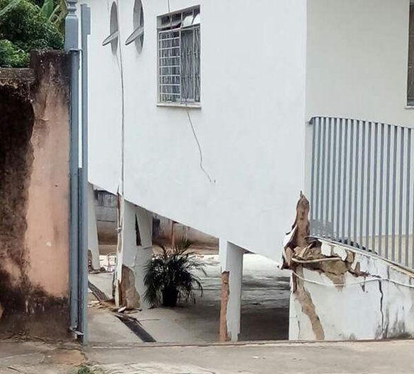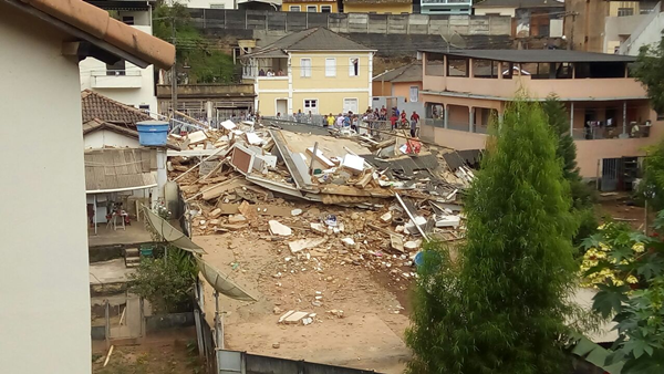 Neste domingo (13) uma residência de dois andares desabou em Manhumirim, por volta de 10h30min.