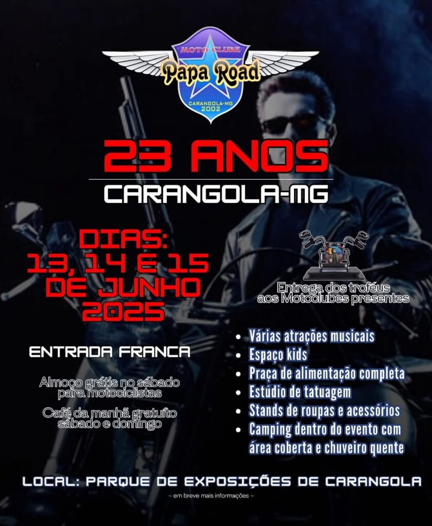 🎸 Grandes atrações musicais com o melhor do circuito motociclístico; 🏍 MC’s de todo o Brasil; 🏆 Troféus para Motociclistas participantes; ⛺ Camping 0800 dentro do evento (com chuveiro quente); 🚌 Área de Motohome; ☕ Café da manhã e almoço grátis para Motociclistas escudados; 🍔 Praça de alimentação com área Gourmet diversificada; 👕 Stands e […]