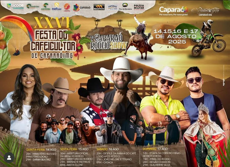 A MAIOR FESTA DA REGIÃO VEM AÍ! Prepare o chapéu, o coração e a energia, porque Caparaó vai ferver! 🤠🔥 🎉 Vem curtir a XXVI Festa do Cafeicultor e o 2º Caparaó Rodeio Show com uma programação de arrepiar! 📍 De 14 a 17 de agosto de 2025 🎤 Shows imperdíveis com: ✨ Sarah Beatriz […]