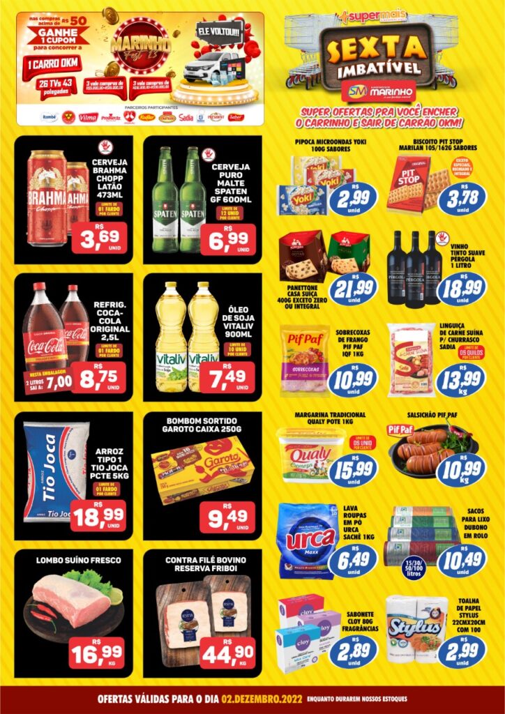 Nós Supermercados Marinho você tem preços baixos e qualidade lá em cima todo dia!!! Aproveite para comprar economizando e concorrendo a mega prêmios!!!