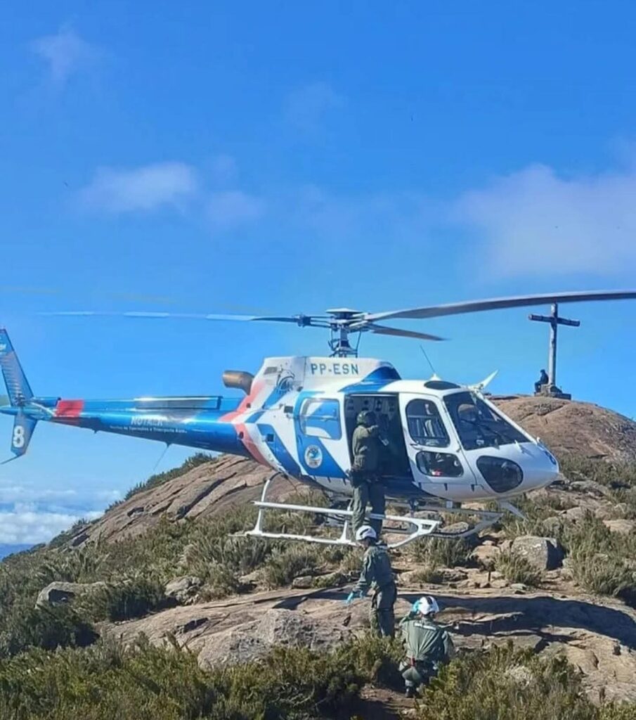 Na manhã deste sábado (05), um homem foi resgatado por um helicóptero do NOTAER – Núcleo de Operações e Transporte Aéreo da Secretaria da Casa Militar do Espírito Santo. Segundo informações, ele apresentava sinais de hipotermia durante uma subida ao Pico da Bandeira. 📸 Fonte: Guia turístico Bruno Heiderich / Redes sociais.