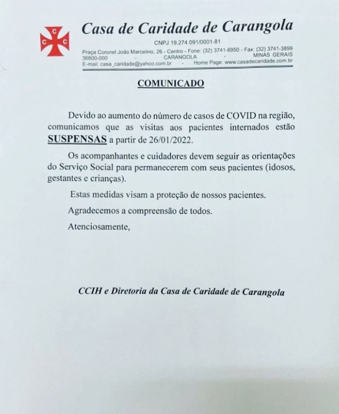 Informação: Diretoria da Casa de Caridade de Carangola.