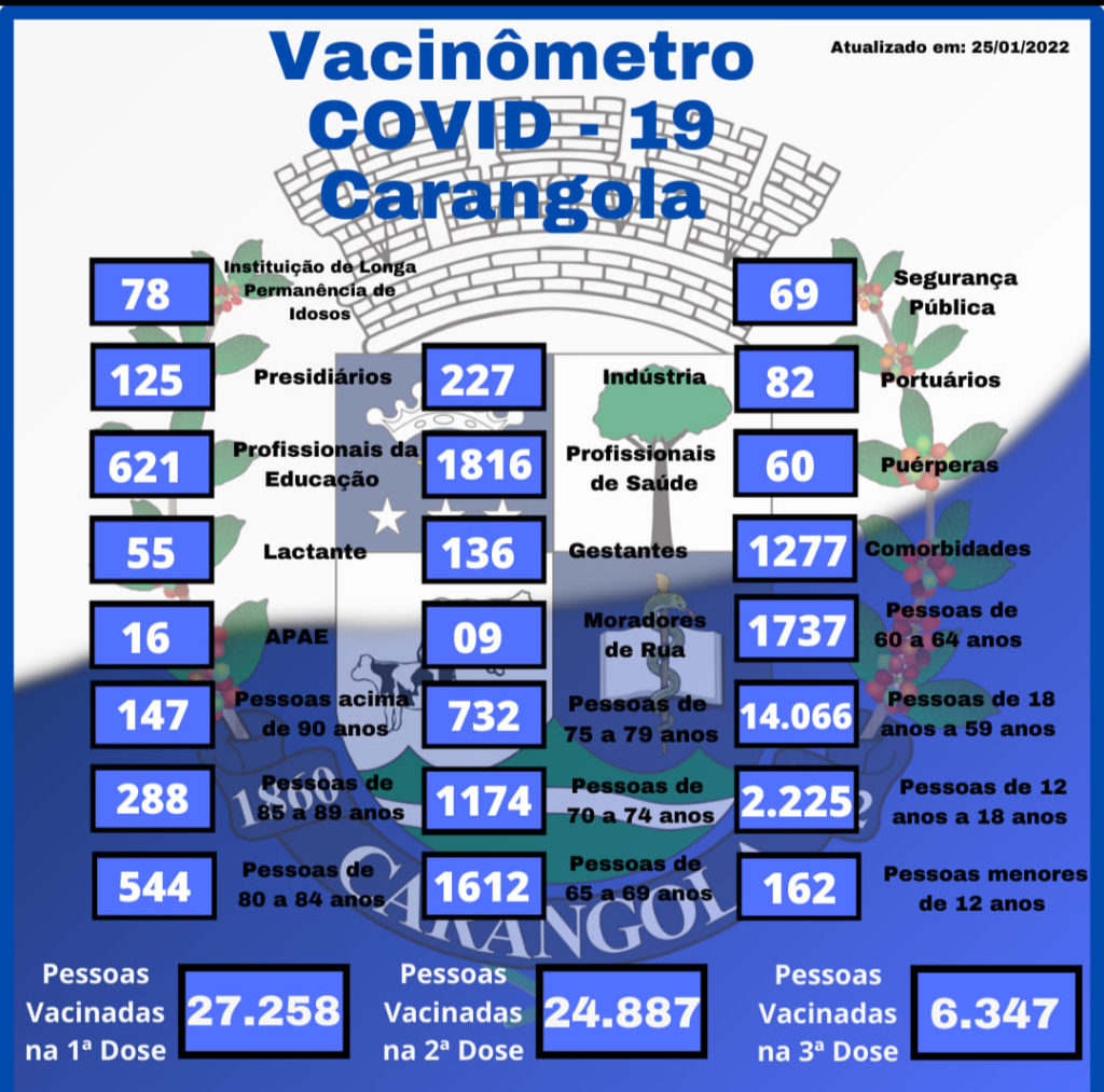 É importante a vacinação com as 3 doses disponíveis para uma imunização eficiente. FONTE: PREFEITURA DE CARANGOLA