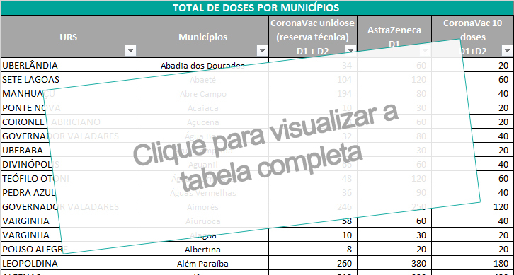 Mais de 356,3 mil doses da AstraZeneca e CoronaVac serão enviadas aos municípios a partir desta segunda-feira (1/2) pelas Unidades Regionais de Saúde O Governo de Minas, por meio da Secretaria de Estado de Saúde (SES-MG), divulgou o número de doses que serão enviadas aos municípios mineiros pelas 28 Unidades Regionais de Saúde (URS) a partir desta […]