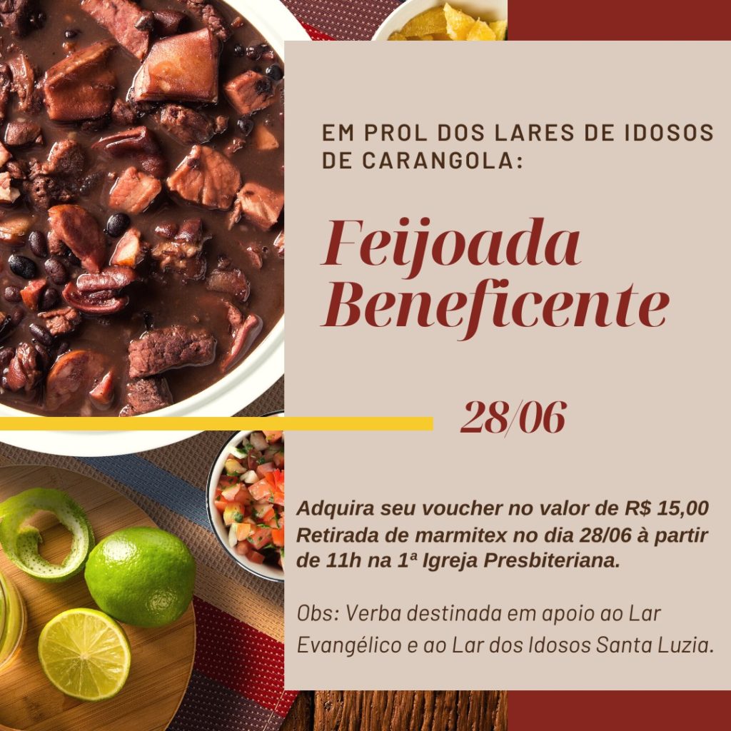 Acontecerá no dia 28/06 a Feijoada Solidária, uma festa em prol da solidariedade, do amor ao próximo e da vida. Todo o lucro obtido será destinado ao Lar Dos Idosos de Carangola e ao Lar Evangélico. Atualmente a organização necessita da doação de ingredientes para preparar a feijoada. Você pode contribuir deixando sua doação no […]