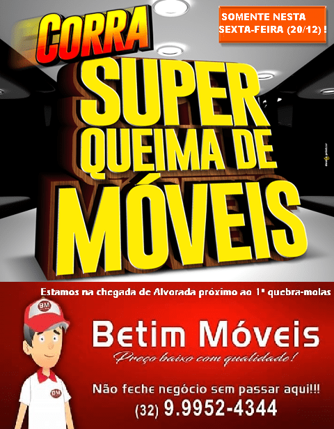 A LOJA BETIM MÓVEIS VAI RENOVAR O SEU ESTOQUE E FARÁ NESTA SEXTA-FEIRA (20/12) UMA QUEIMA DE ESTOQUE DE SOFÁS E ROUPEIROS, COM DESCONTOS SENSACIONAIS!!! APROVEITE ESSA OPORTUNIDADE ÍMPAR DE COMPRAR O SEU ROUPEIRO OU SOFÁ ECONOMIZANDO!!! A BETIM MÓVEIS ESTÁ LOCALIZADA À RUA JOSÉ VIANA COELHO, Nº 242, LOGO NA CHEGADA DO DISTRITO DE […]