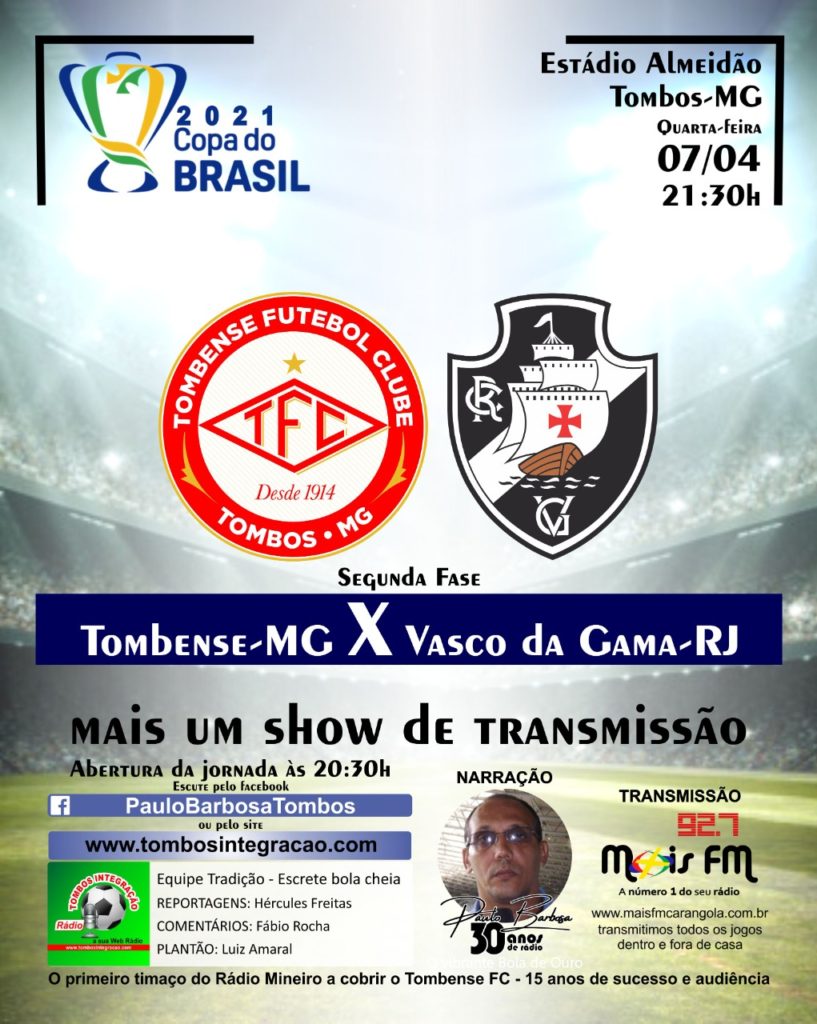 A CBF detalhou a tabela da segunda fase da Copa do Brasil com a indicação dos jogos com transmissão. Ausente na primeira fase, a Globo vai estrear na atual edição do torneio no dia 7 de abril (quarta-feira) com jogos do Bahia, Vasco, Botafogo e Cruzeiro. O JOGO TOMBENSE X VASCO DA GAMA ACONTECERÁ NO […]