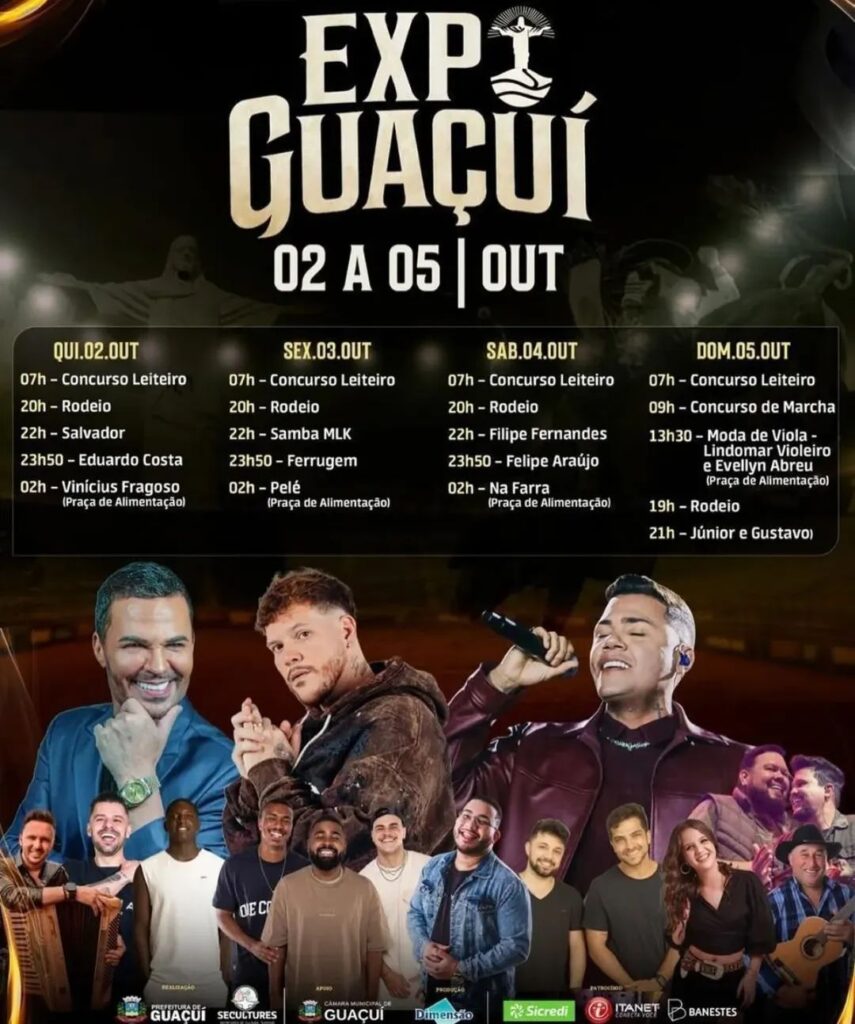 A cidade de Guaçuí se prepara para viver dias de muita música, tradição e entretenimento com a realização da Expo Guaçuí 2025, que acontece de 2 a 5 de outubro. O evento contará com shows nacionais, rodeio, concursos e atrações culturais que prometem agitar o público durante os quatro dias de festa. A programação tem […]