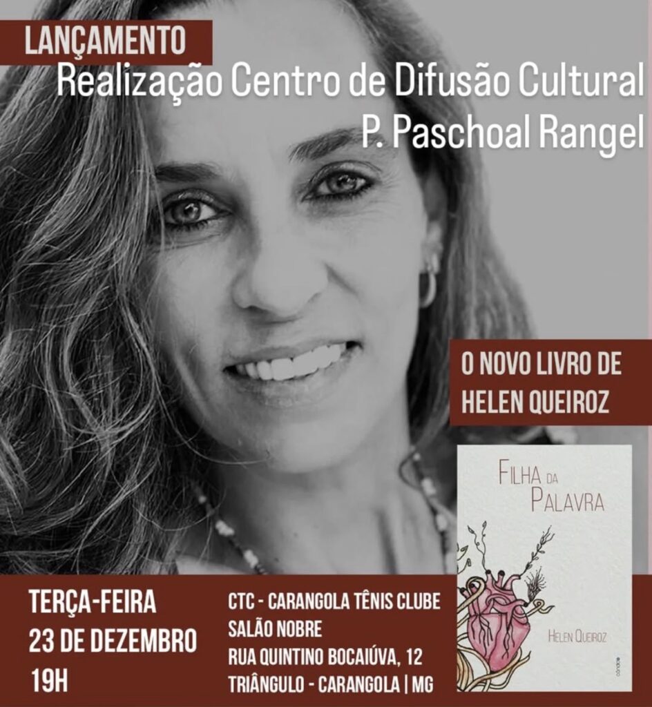 O Centro de Difusão Cultural Padre Pascoal Rangel tem a honra de convidar para o lançamento do livro “Filha da Palavra”, da escritora Helen Queiroz, uma obra que atravessa sentimentos, memória e silêncio, e encontra no leitor um lugar de morada. Terça-feira, 23 de dezembro 19 horas CTC – Carangola Tênis Clube | Salão Nobre […]
